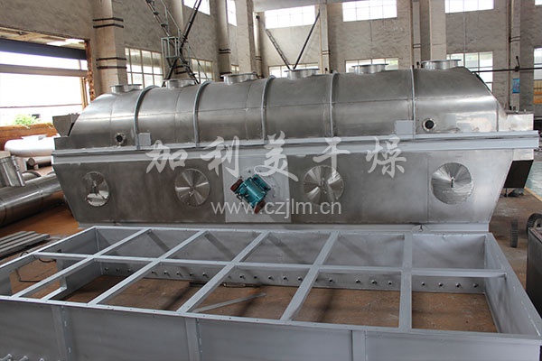 物料自進料口進入機內(nèi),在振動力作用下,物料沿水平流化床拋擲,向前連續(xù)運動,熱風(fēng)向上穿過流化床同濕物料換熱后,濕空氣經(jīng)旋風(fēng)分離器除塵后由排風(fēng)口排出,干燥物料由排料口排出。